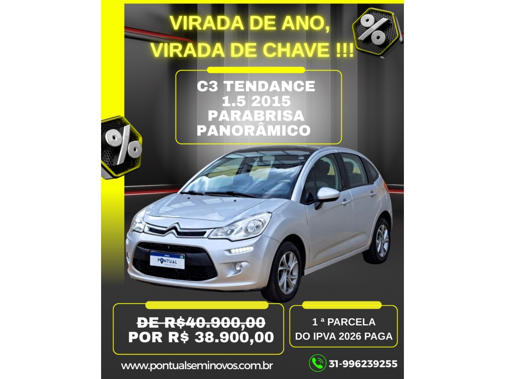 C3 TENDANCE 2015 1.5 COMPLETO com Roda de Liga Leve e Para-brisa Zenith !!!!